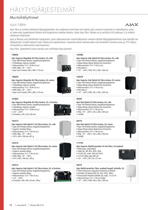 se tukee sekä kaapeloitavia laitteita että langattomia Jeweller-laitteita. Useat Ajax Fibra -laitteet on jo sertifioitu EN-luokkaan 3, ja määrän