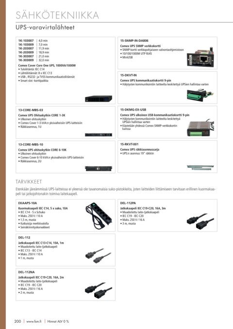• Comex Cover 6-10 kVA:n yksivaiheisiin UPS-laitteisiin