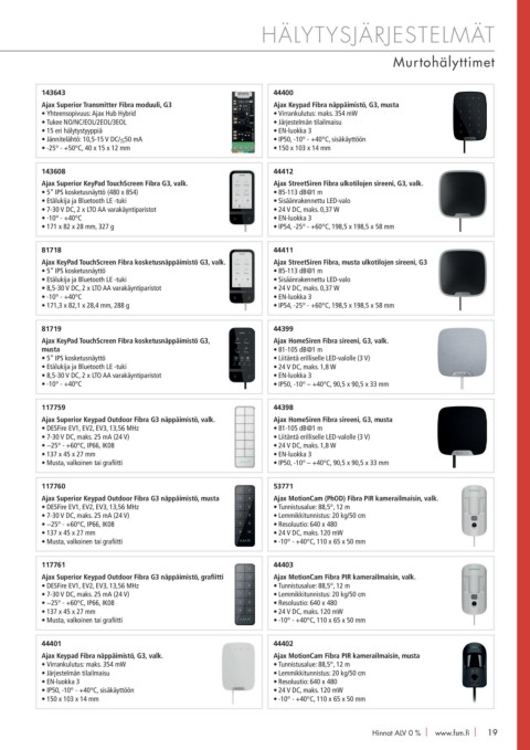 Ajax Superior Keypad Outdoor Fibra G3 näppäimistö, valk. Ajax HomeSiren Fibra sireeni, G3, musta