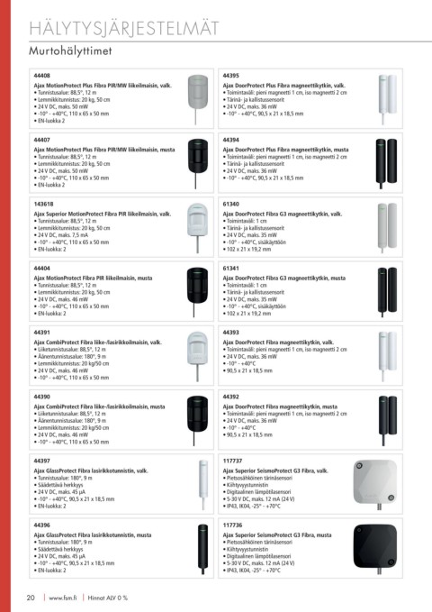 Ajax Superior MotionProtect Fibra PIR liikeilmaisin, valk. Ajax DoorProtect Fibra G3 magneettikytkin, valk.
