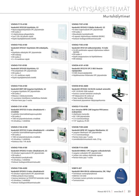 Vanderbilt SPCK420 Käyttölaite, G3 Vanderbilt SPCG310 SPC E-BUS ilmaisin-