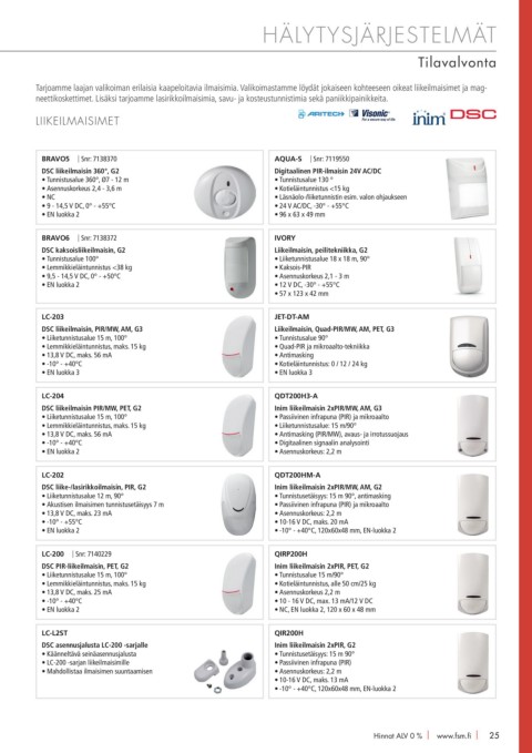 • LC-200 -sarjan liikeilmaisimille • Passiivinen infrapuna (PIR)