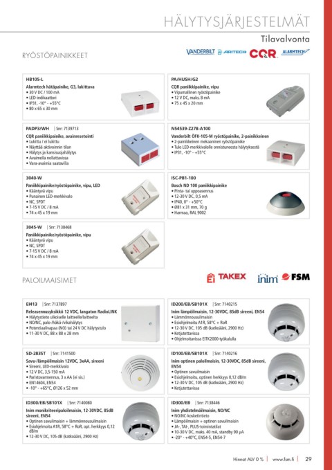 • Hälytys ja kansisuojahälytys • IP31, -10° - +55°C