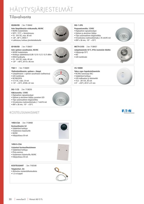 • -20°...40° C, EN54-7 • Virrankulutus (valmiustila/maks.): 35 mA/45 mA