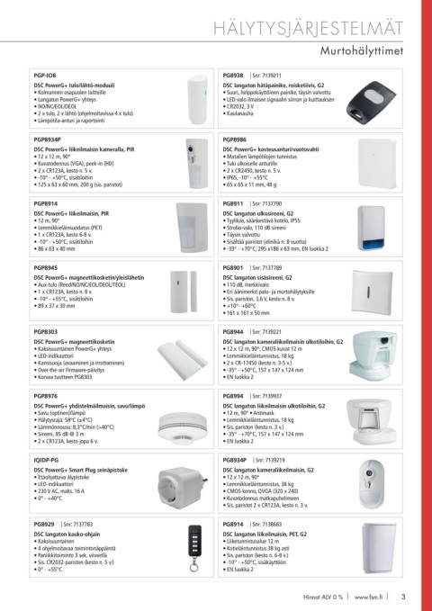 • 1 x CR123A, kesto n. 8 v. • Eri äänimerkit palo- ja murtohälytyksille