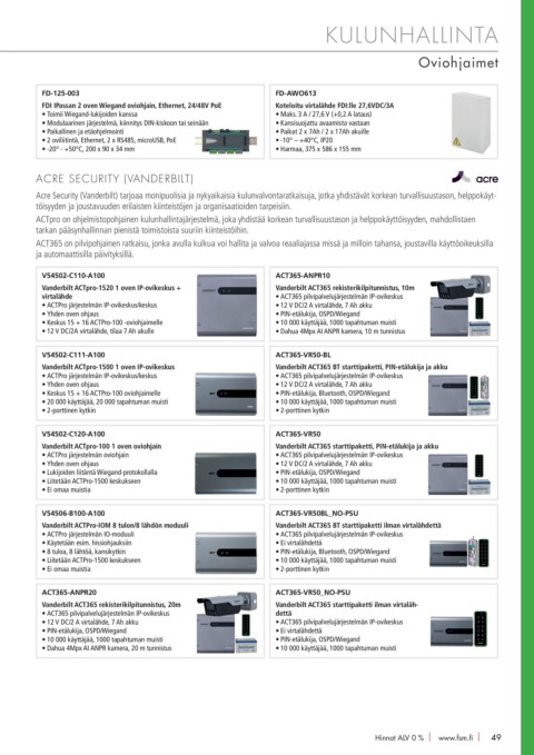 • ACTPro järjestelmän oviohjain • ACT365 pilvipalvelujärjestelmän IP-ovikeskus
