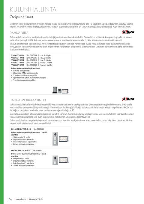 Dahua VillaKit on valmis, esiohjelmoitu ovipuhelinjärjestelmäpaketti omakotitaloihin. Saatavilla on erilaisia kokoonpanoja yhdellä tai useam-