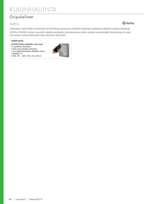 UP200 on GSM/4G-toiminen ovipuhelin kahdella painikkeella, joita painettaessa puhelu soitetaan vastaanottajille. Vastaanottaja voi avata