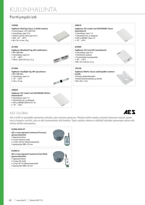AES e-LOOP on ajoväylälle asennettava silmukka, joka tunnistaa ajoneuvon. Pohjolan oloihin soveltuu erityisesti kokonaan maahan upotet-