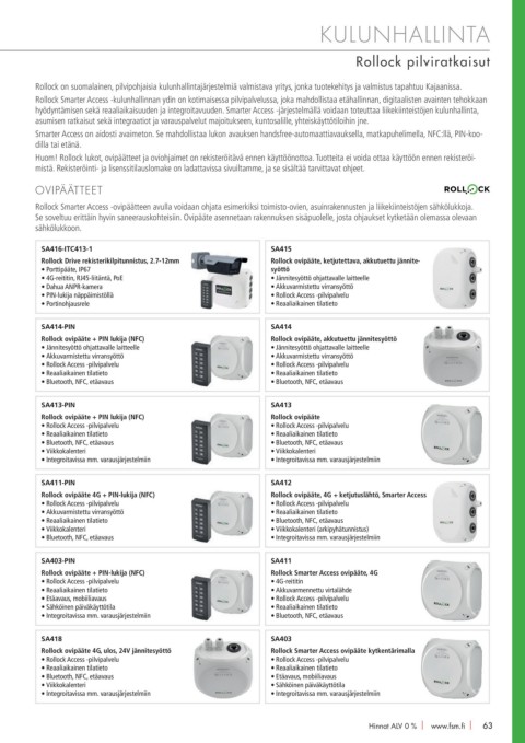 • PIN-lukija näppäimistöllä • Rollock Access -pilvipalvelu