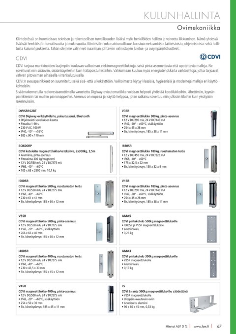 tusta kulunohjauksesta. Tähän olemme valinneet maailman johtavien valmistajien lukitus- ja oviympäristötuotteet.
