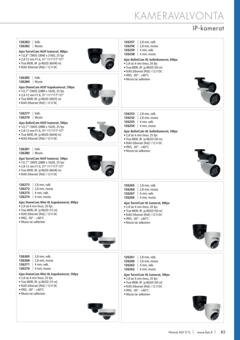 Ajax DomeCam Mini HL kupukamerat, 8Mpx Ajax TurretCam HL kamerat, 8Mpx