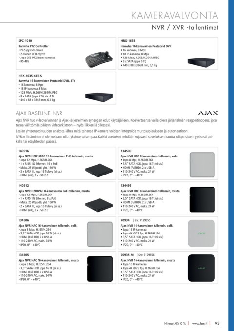 Ajax NVR H2D16PAC 16-kanavainen PoE-tallennin, musta Ajax NVR HAC 8-kanavainen tallennin, valk.