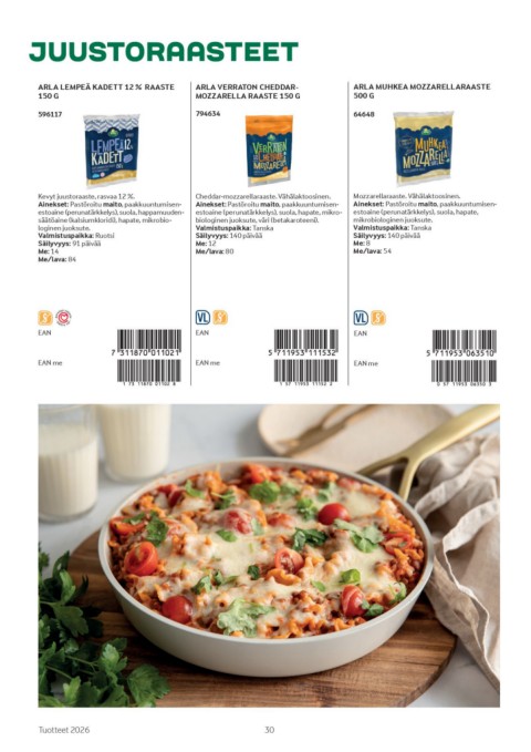 ARLA LEMPEÄ KADETT 12 % RAASTE ARLA VERRATON CHEDDAR- ARLA MUHKEA MOZZARELLARAASTE