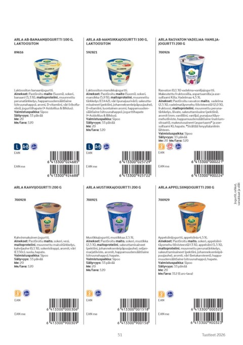 ARLA KAHVIJOGURTTI 200 G ARLA MUSTIKKAJOGURTTI 200 G ARLA APPELSIINIJOGURTTI 200 G Jogurtit, rahkat,