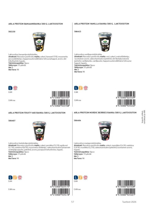 ARLA PROTEIN FRUITY MIX RAHKA 500 G, LAKTOOSITON ARLA PROTEIN NORDIC BERRIES RAHKA 500 G, LAKTOOSITON Jogurtit, rahkat,