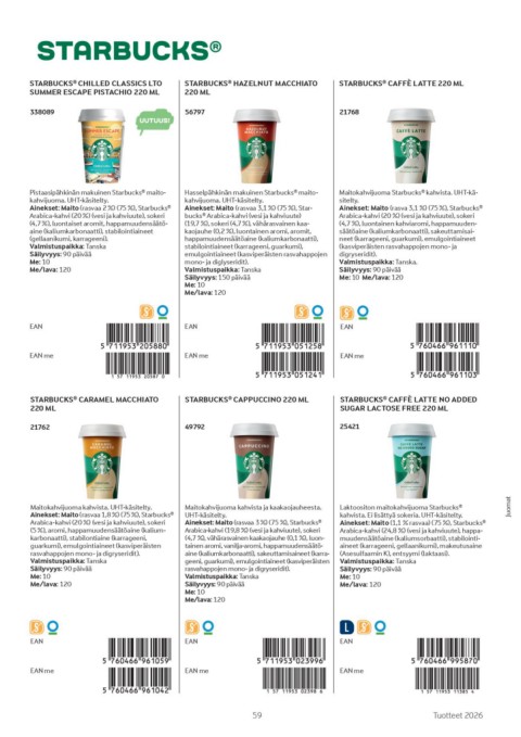 Ainekset: Maito (rasvaa 2 %) (75 %), Starbucks® Ainekset: Maito (rasvaa 3,1 %) (75 %), Star Ainekset: Maito (rasva 3,1 %) (75 %), Starbucks®