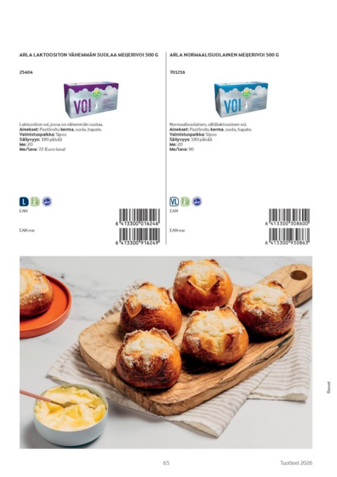 Laktoositon voi, jossa on vähemmän suolaa. Normaalisuolainen, vähälaktoosinen voi.