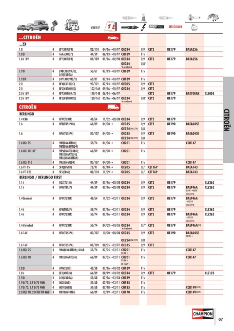 1.4 i 4 KFW(TU3JP) 55/74 07/96fl12/11 OE034 0,9 CET2 OE179