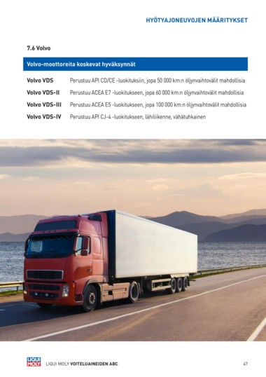 Volvo VDS-II Perustuu ACEA E7 -luokitukseen, jopa 60 000 km:n öljynvaihtovälit mahdollisia