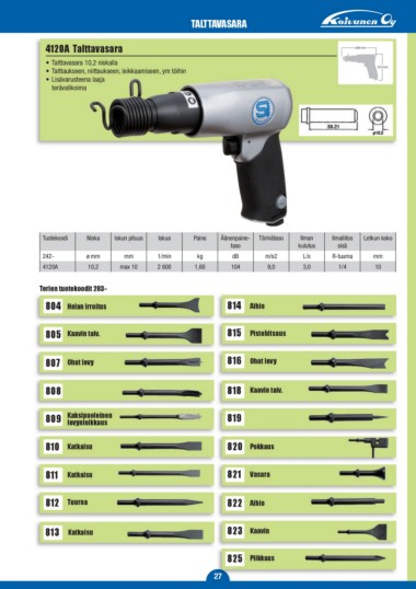 Tuotekoodi Niska Iskun pituus Iskua Paino Äänenpaine- Tärinätaso Ilman Ilmaliitos Letkun koko