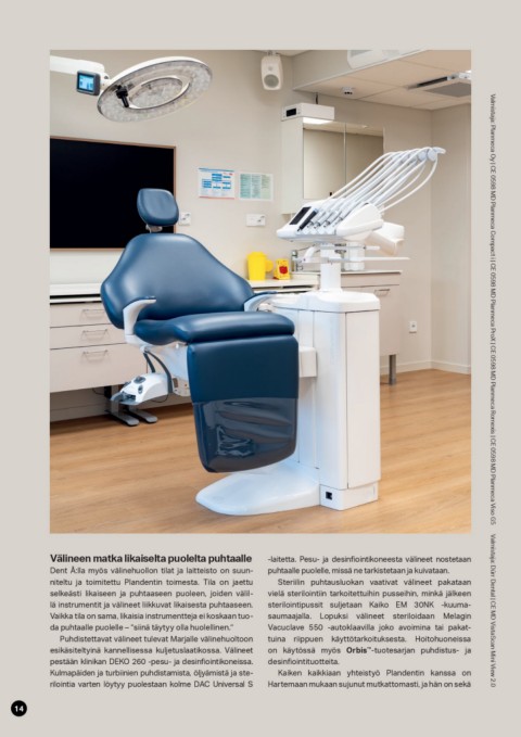 Välineen matka likaiselta puolelta puhtaalle -laitetta. Pesu- ja desinfiointikoneesta välineet nostetaan Valmistaja: Planmeca Oy | CE 0598 MD Planmeca Compact i | CE 0598 MD Planmeca ProX | CE 0598 MD Planmeca Romexis | CE 0598 MD Planmeca Viso G5 Valmistaja: Dürr Dental | CE MD VistaScan Mini View 2.0
