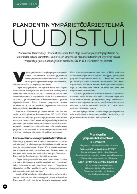 Planmedin ja Plandentin ympäristöjärjestelmiin.                                    •	 Kierrätysasteen parantaminen