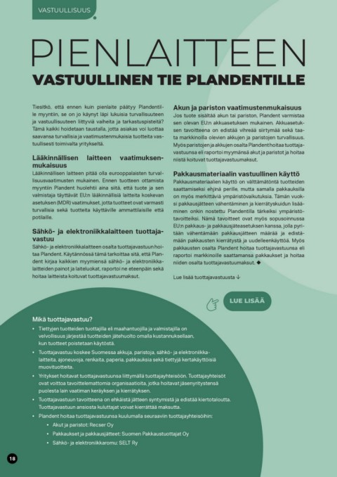 ja vastuullisuuteen liittyviä vaiheita ja tarkastuspisteitä?  Jos tuote sisältää akun tai pariston, Plandent varmistaa