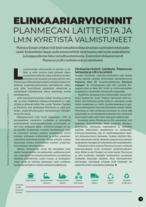 Planmeca ja LM keräävät ja analysoivat laajasti tietoa tuot-  aikana saaneet valmiiksi ensimmäiset elinkaariarvioinnit