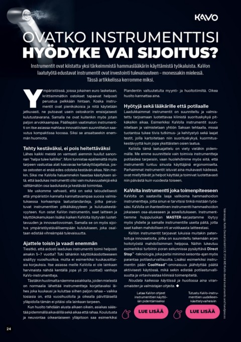 vyyteen. Kun ostat KaVon instrumentin, saat laitteen ja säsi. KaVolla on ihanteellinen instrumentti hammashoidon