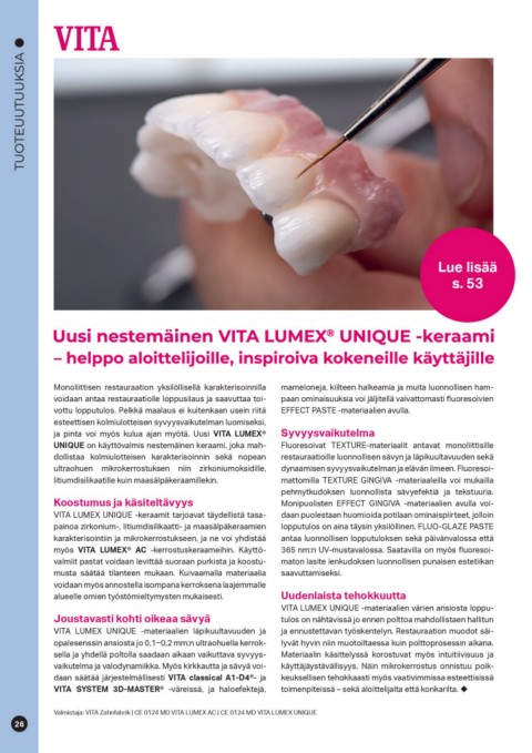 Joustavasti kohti oikeaa sävyä VITA LUMEX UNIQUE -materiaalien värien ansiosta loppu-