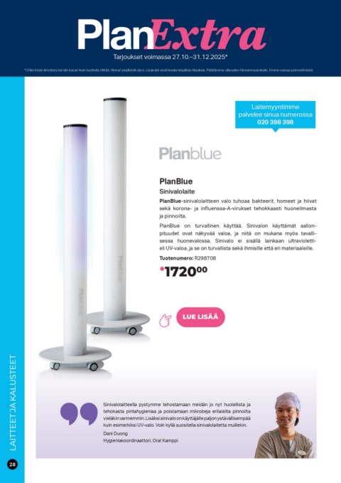 Sinivalolaitteella pystymme tehostamaan meidän jo nyt huolellista ja
