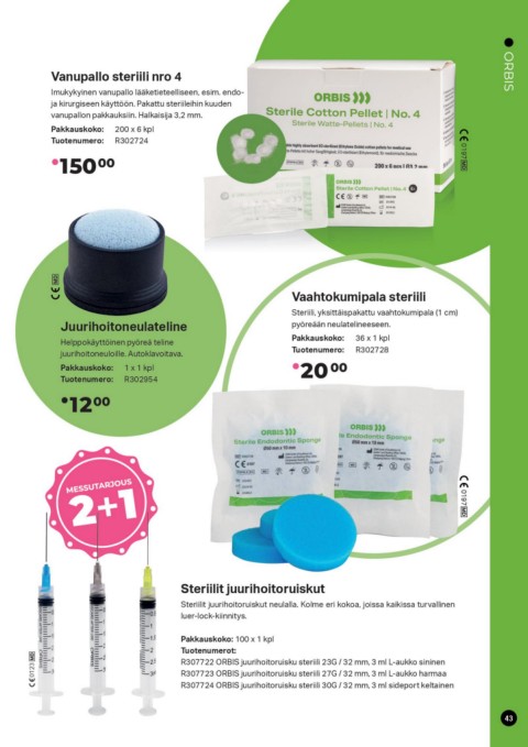 ja kirurgiseen käyttöön. Pakattu steriileihin kuuden