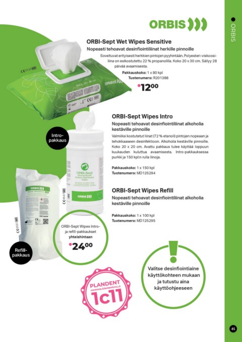 tehokkaaseen desinfektioon. Alkoholia kestäville pinnoille.
