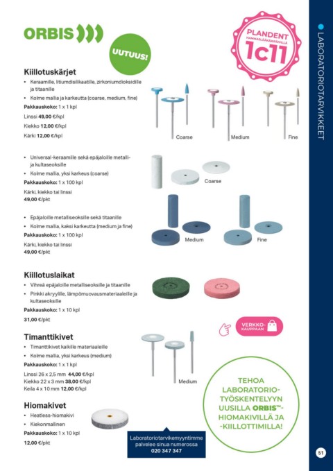 • Kolme mallia, yksi karkeus (medium) UUSILLA ORBIS™-
