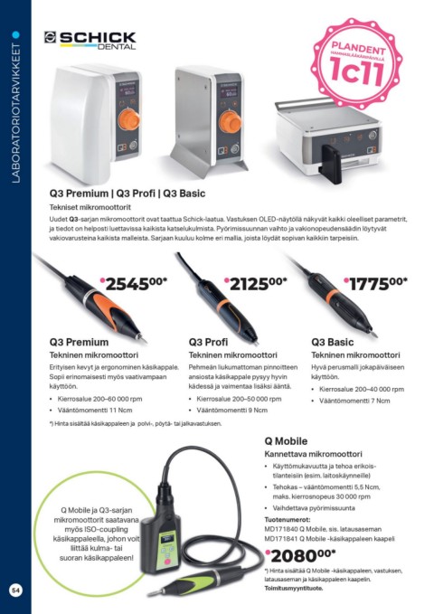 Uudet Q3-sarjan mikromoottorit ovat taattua Schick-laatua. Vastuksen OLED-näytöllä näkyvät kaikki oleelliset parametrit,