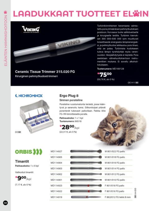 ja kirurgiselle terälle. Turbiinin kierrok-
