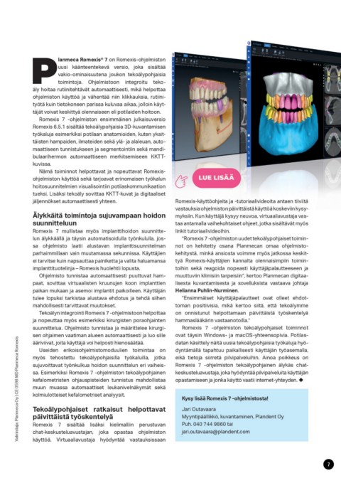 sa. Esimerkiksi Romexis 7 -ohjelmiston tekoälypohjainen