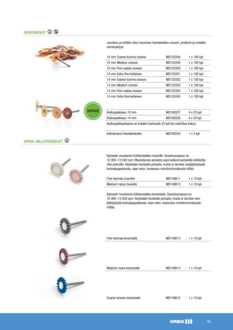 Spiraalin muotoinen kiillotuslaikka keramialle. Suositusnopeus on