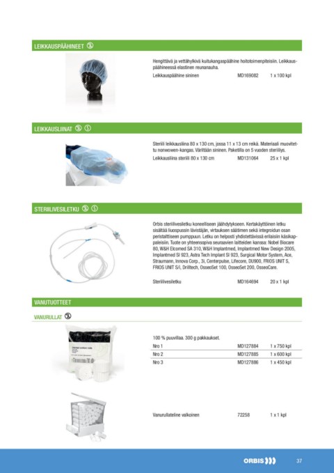 LEIKKAUSPÄÄHINEET Hengittävä ja vettähylkivä kuitukangaspäähine hoitotoimenpiteisiin. Leikkaus-