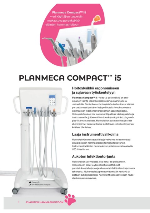 Planmeca Compact™ i5 -hoito- ja porayksikkö on erin-