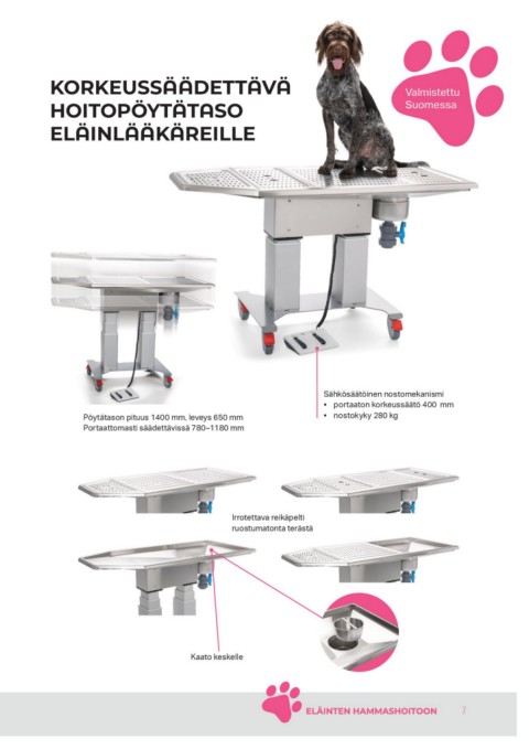 Pöytätason pituus 1400 mm, leveys 650 mm Sähkösäätöinen nostomekanismi